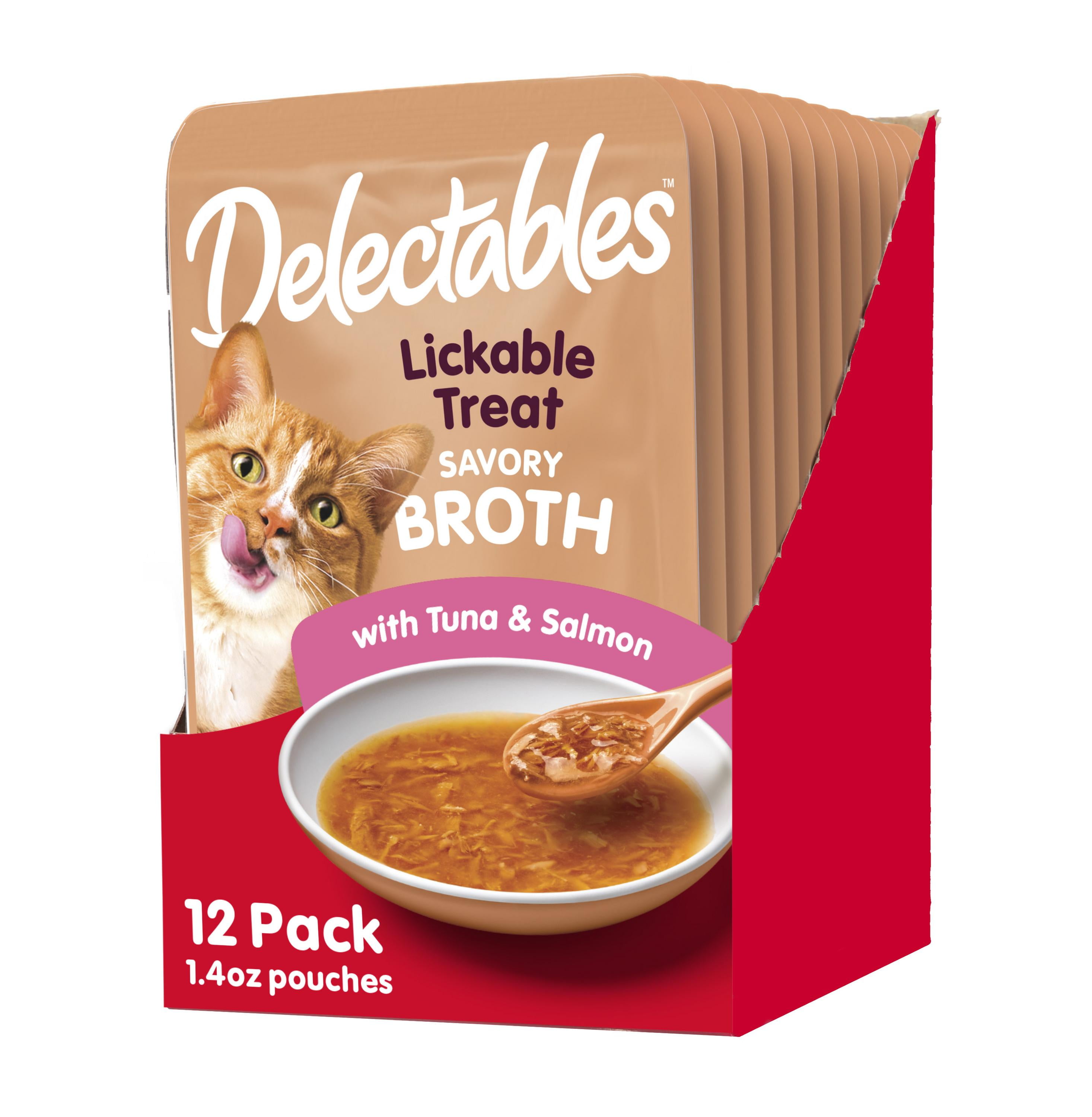 Hartz Delectables Savory Broths Tuna Salmon Flavor Wet Treat For Cats 1 4oz Pouch 12 Pack Walmart Com